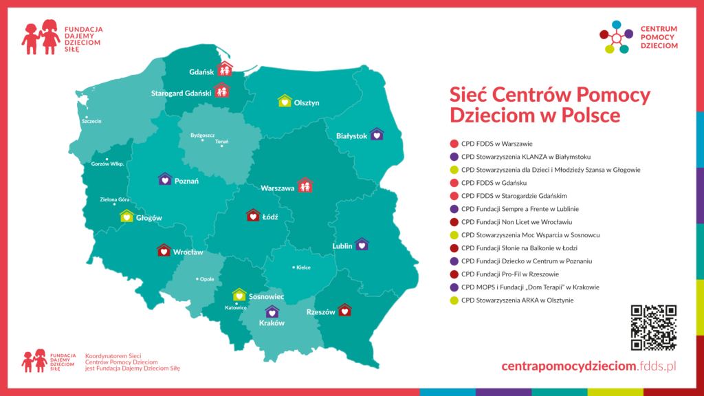 FDDS koordynuje także sieć Centrów Pomocy Dzieciom w Polsce. Więcej informacji dostępnych jest na stronie: centrapomocydzieciom.fdds.pl