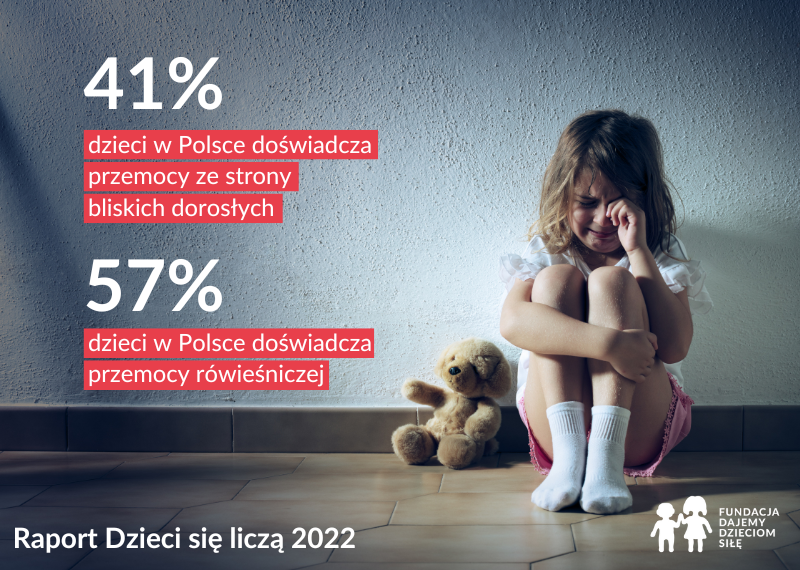 •  41% dzieci doświadcza przemocy ze strony bliskich dorosłych, a 57% ze strony rówieśników;