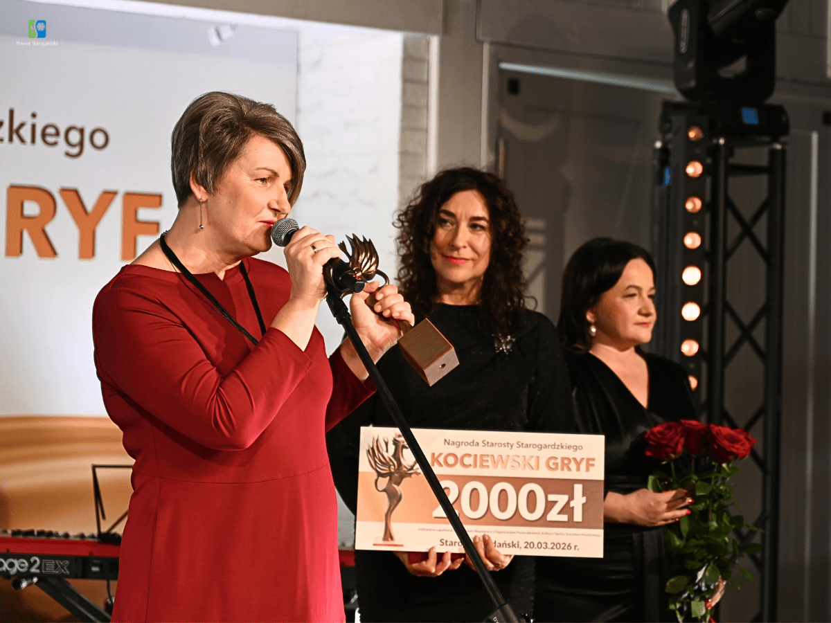 W miniony weekend w Starogardzie Gdańskim odbyła się gala rozdania Nagród Starosty Starogardzkiego „Kociewski Gryf”. To nagrody przyznawane osobom i inicjatywom, które swoją pracą, pasją i zaangażowaniem przyczyniają się do rozwoju całego regionu. Podczas jubileuszowej 25. edycji tytuł Organizacji Pozarządowej Roku 2025 otrzymało nasze Centrum Pomocy Dzieciom w Starogardzie Gdańskim. Nagroda, którą odebrała kierownik Centrum Aurelia Jankowska, została przyznana za konsekwentne i systemowe działania na rzecz krzywdzonych dzieci oraz rozwój profesjonalnej pomocy w Powiecie Starogardzkim.