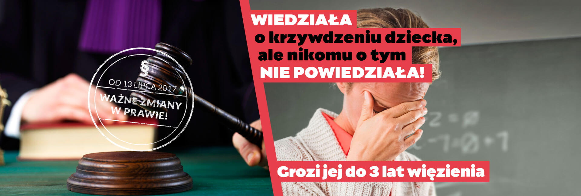 W lipcu 2017 r. weszła w życie nowelizacja kodeksu karnego, która zwiększa karnoprawną ochronę dzieci – ofiar przestępstw. Rozpoczęliśmy kampanię informacyjną „Reaguj – to Twój prawny obowiązek!”, która ma na celu skierowanie uwagi społeczeństwa, a szczególnie specjalistów pracujących z dziećmi, na ważne zmiany zachodzące w polskim prawie.